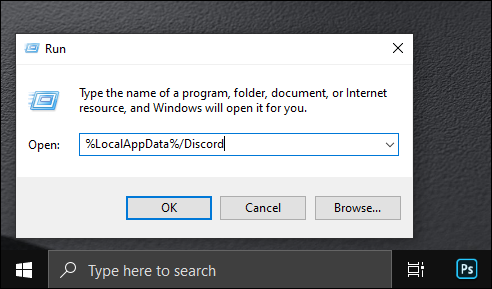 2. Type in “%AppData%/Discord” and press “Enter.”