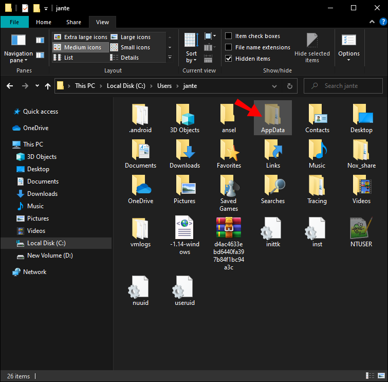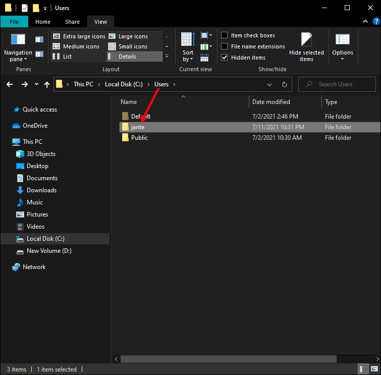 - Navigate to the “Users” folder, and then to the folder with your username.