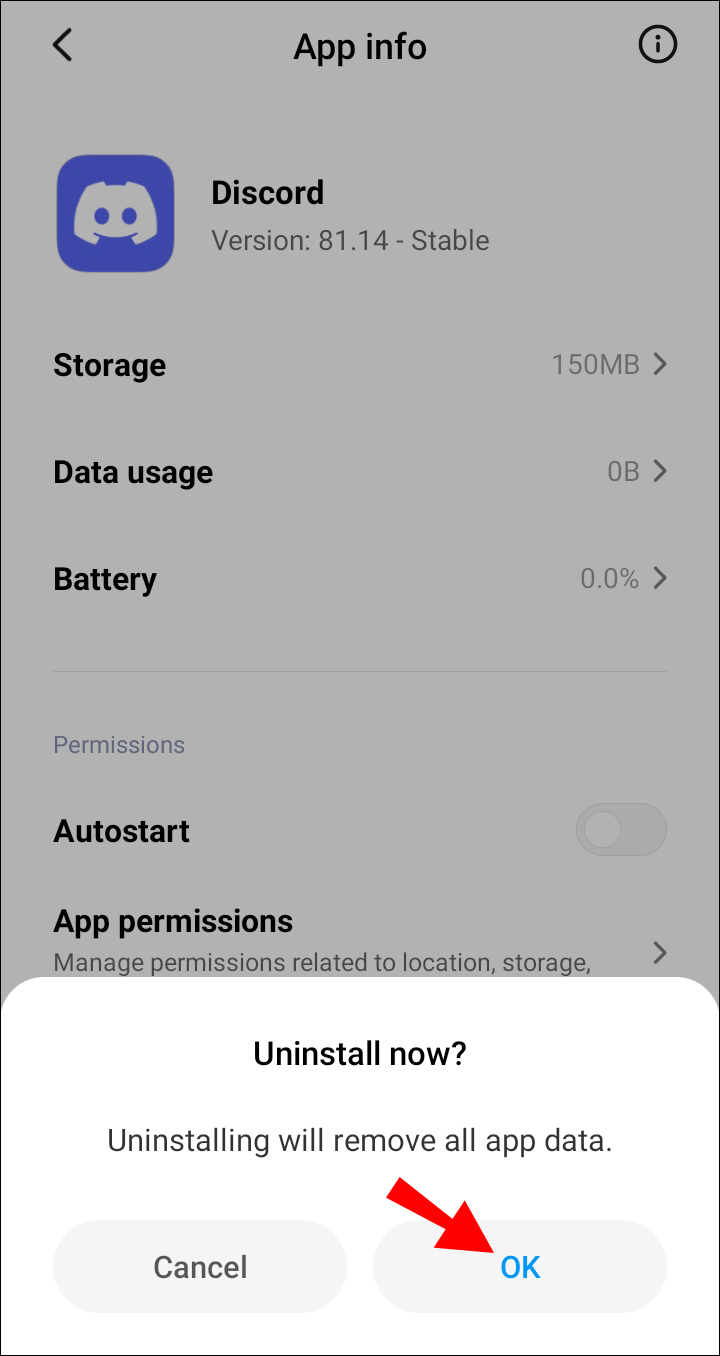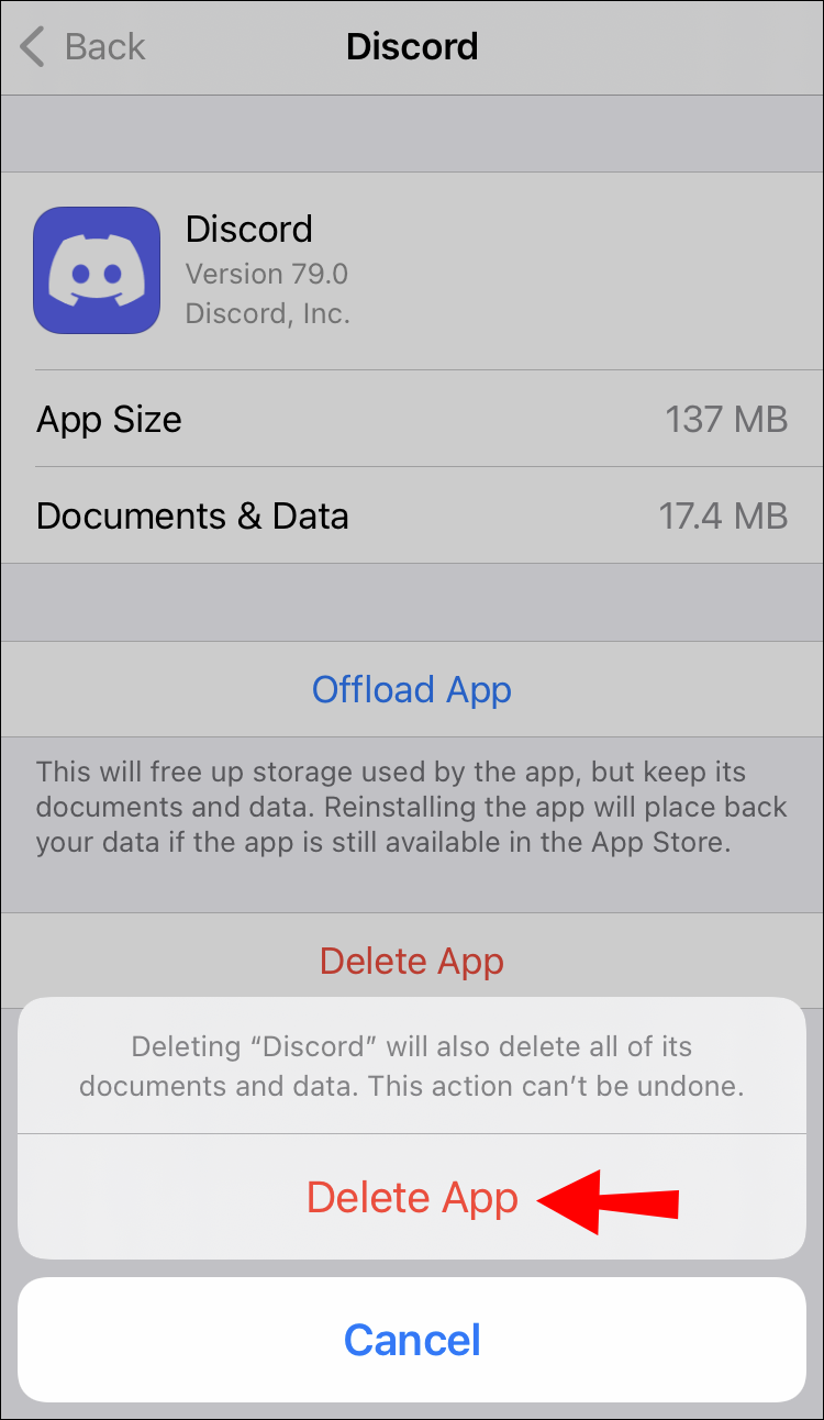 - Confirm that you want to uninstall Discord by tapping on “Delete” again.