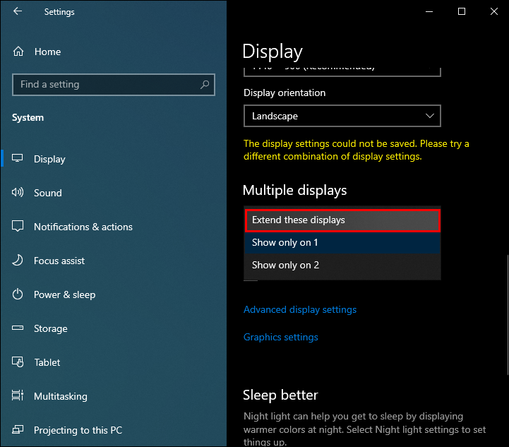 - Select Extend these displays on the drop-down menu.