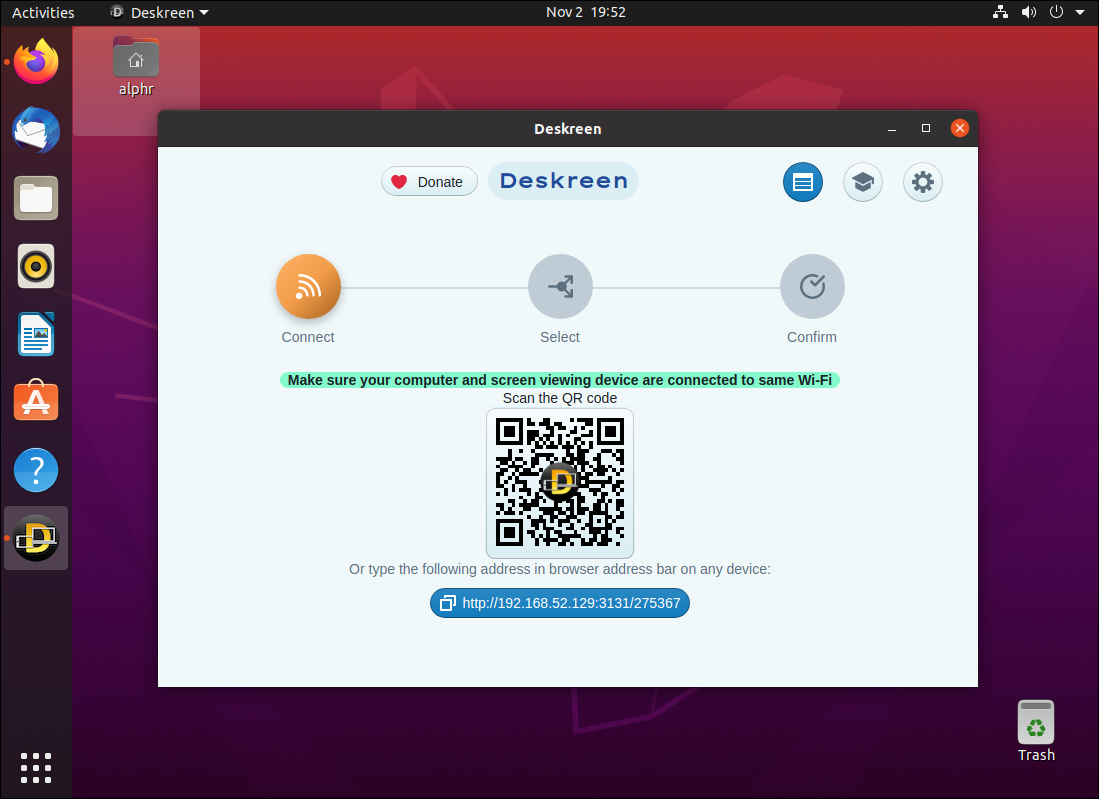 Most screen mirroring and extending apps only work for Windows and Mac, but Linux users can turn to the Deskreen app. What’s more, this app lets you use multiple displays at once. In order for this to work, you’ll need to have 5GHz Wi-Fi or Ethernet. Once you’ve downloaded the app to your Linux device, this is what you need to do next: