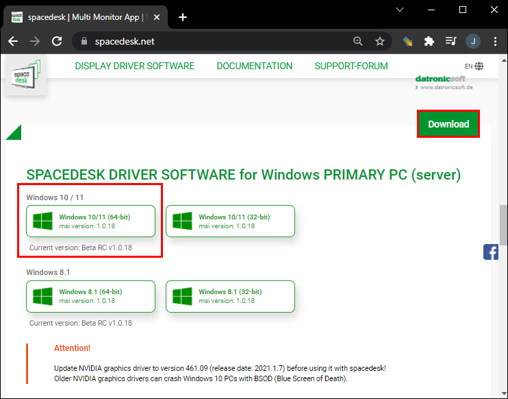 - Download Spacedesk drivers on your Windows. Make sure you choose the right installation file type for your Windows OS version.