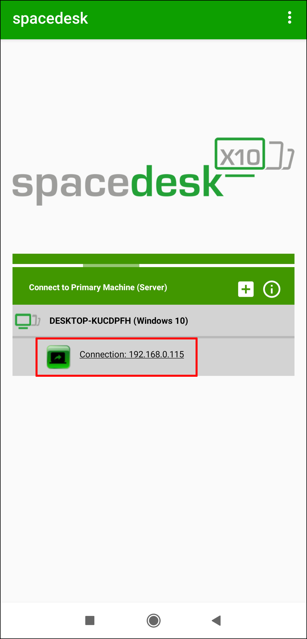 - Tap on the + icon next to Connect to Primary Machine (Server).