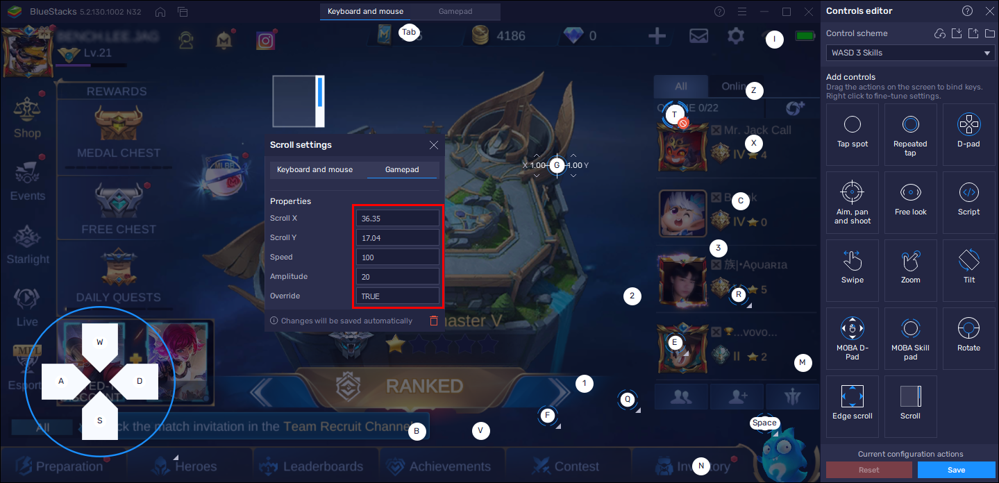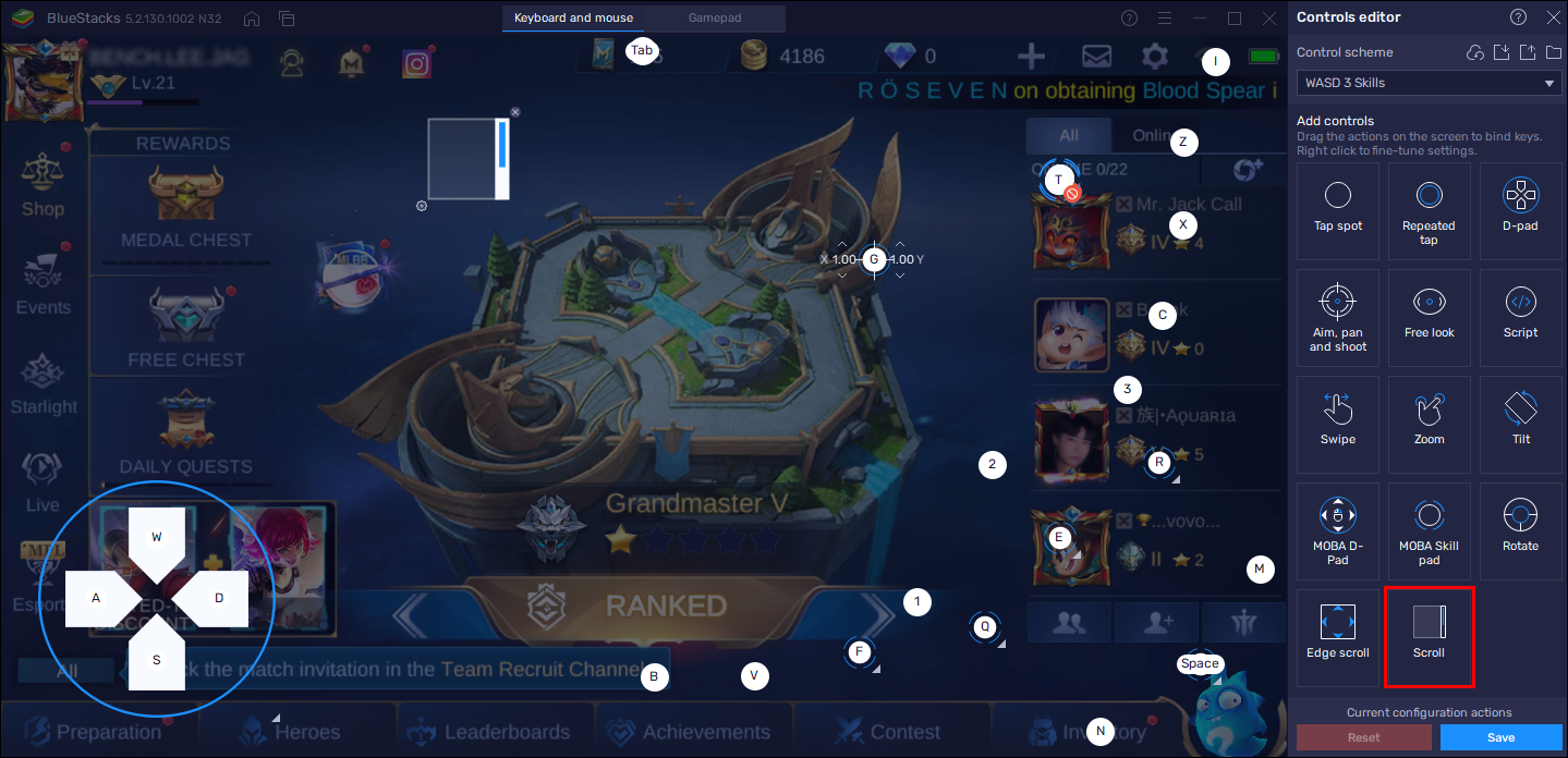 Playing Mobile Legends on BlueStacks is much the same as playing CoD Mobile. Mobile Legends is configured on BlueStacks mainly for a keyboard and mouse and offers both MOBA and WASD control schemes. While you can connect your controller and use that instead, you will need to edit your controls to play the game properly. Here is how you go about it: