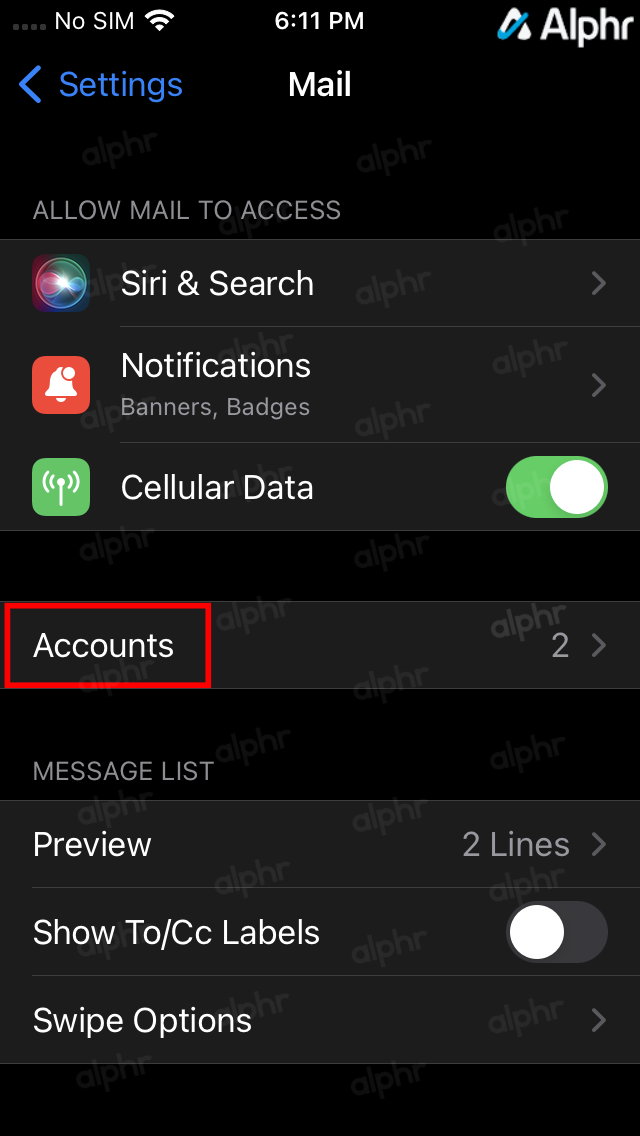 - Tap on Accounts.
