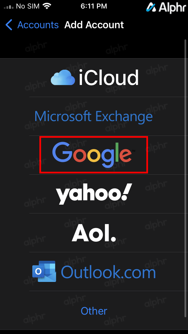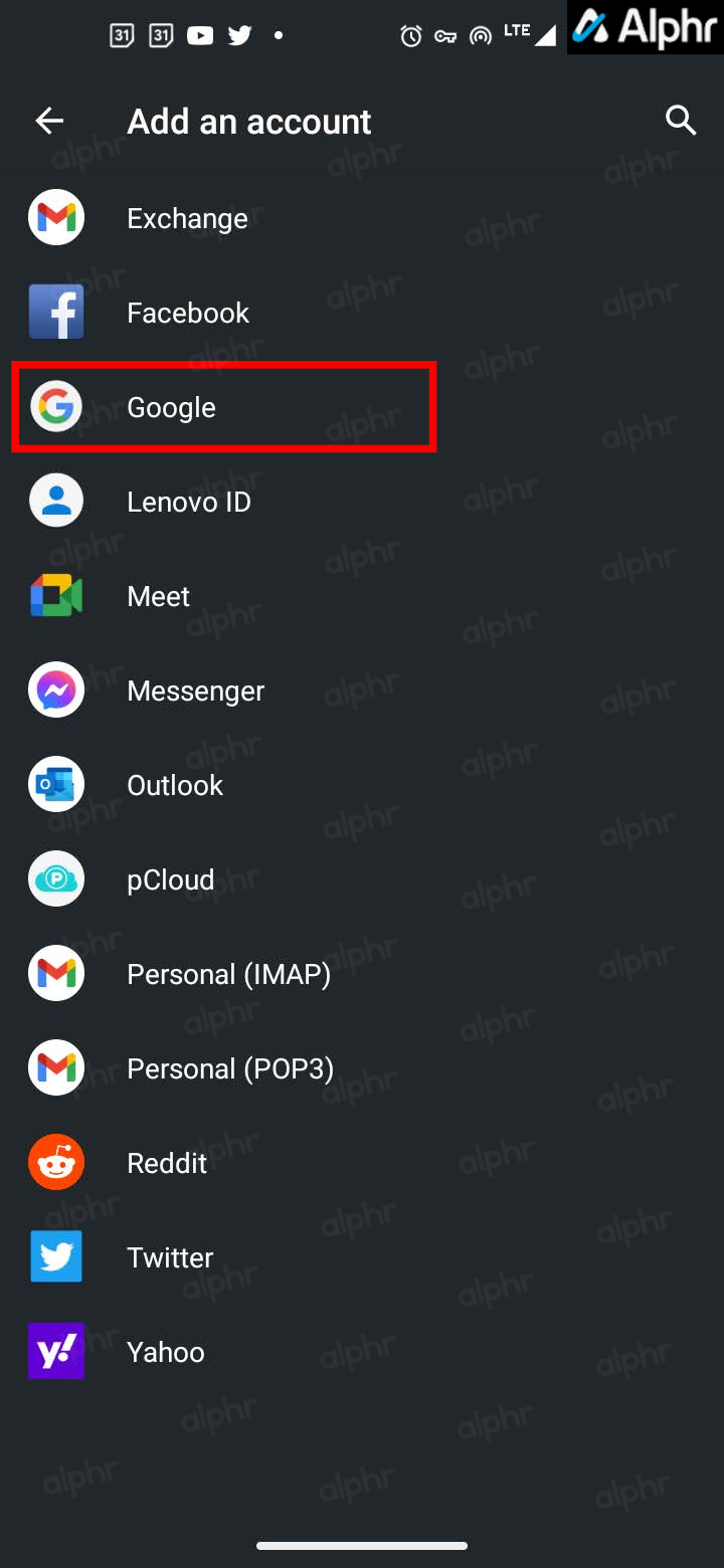 - Select Google from the list.