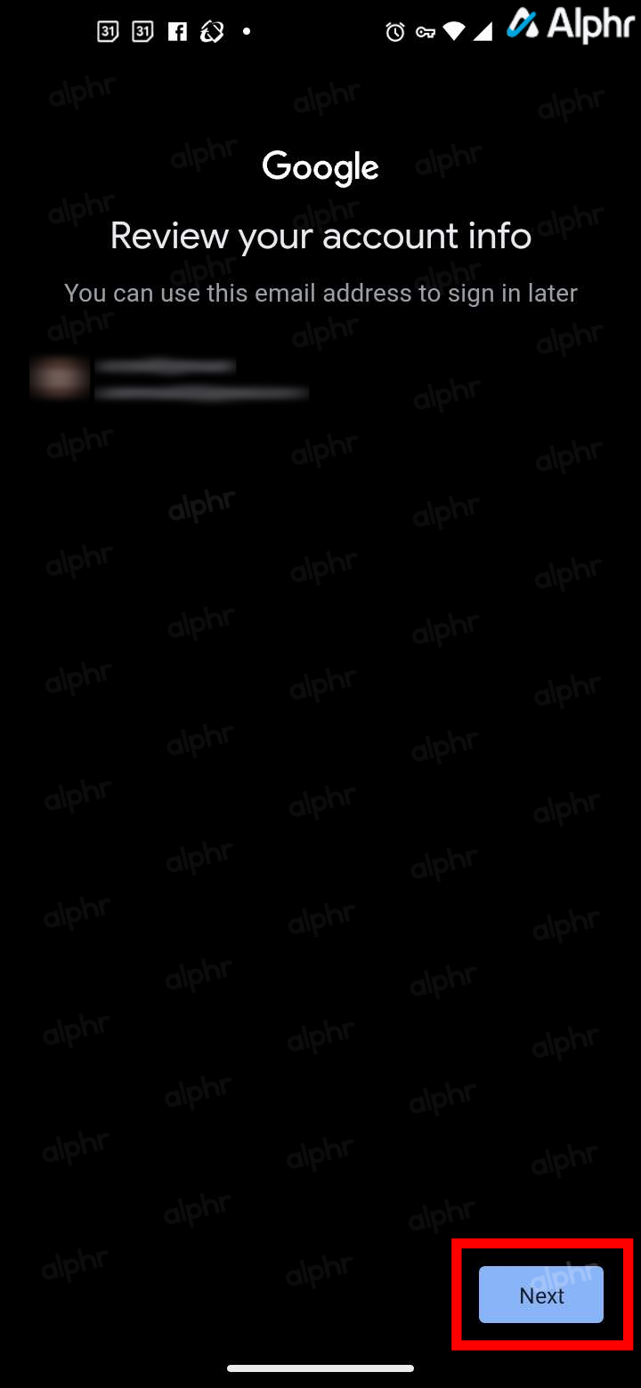 - On the “Review your account info” screen that appears, tap on Next.