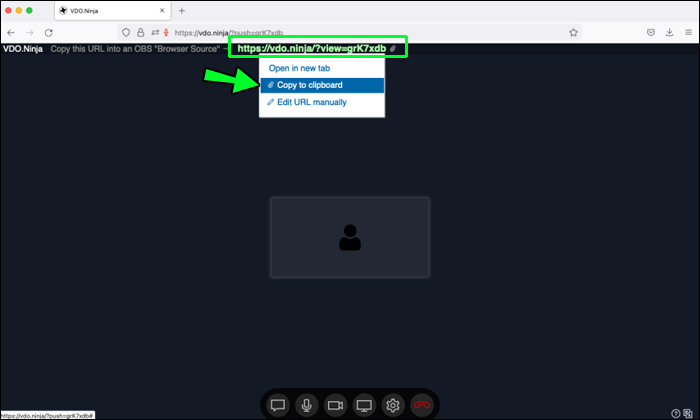 - Then towards the top right corner of the screen, you’ll see a URL. You’ll need this later to enter in OBS, so either copy it to your clipboard or write it down.