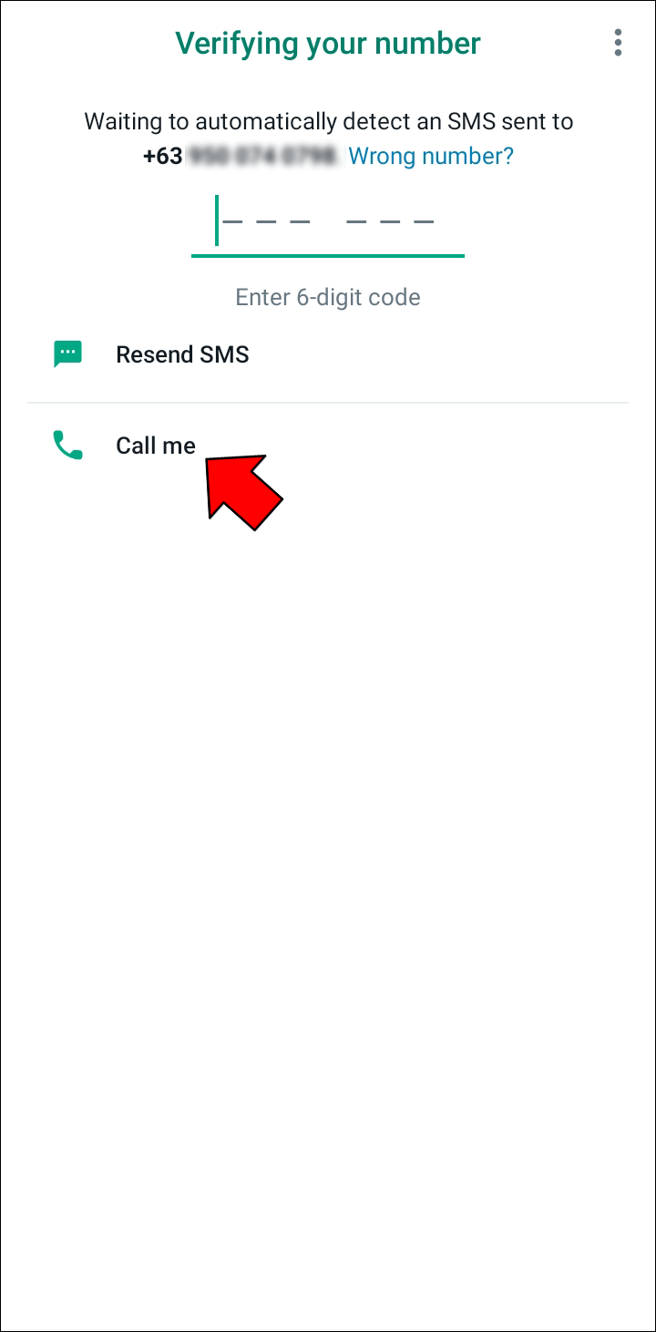 - Wait until you can press Call Me and then prompt WhatsApp to give you the verification code through a phone call.