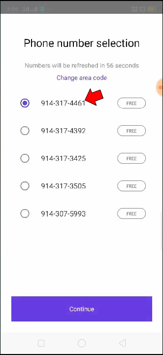 - TextNow will offer you several free number options. If you don’t like any of them, you can tap Refresh numbers.