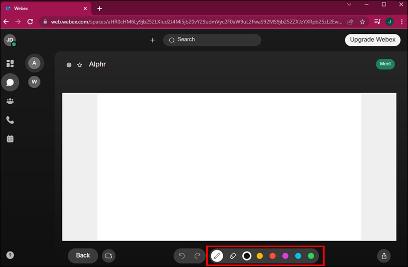 As mentioned above, you can access Webex using a web browser. Here, we’ll show you how to create a whiteboard while you’re in a meeting or in a Webex space.