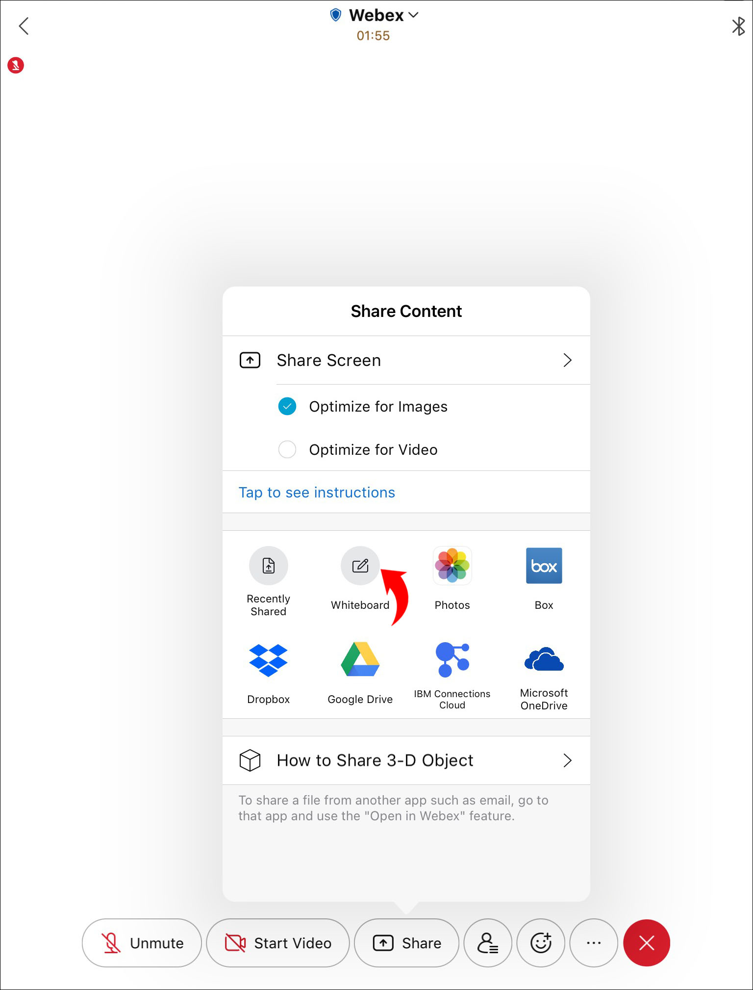 Follow the steps below to create and manage the whiteboard in a Webex meeting on your iPhone: