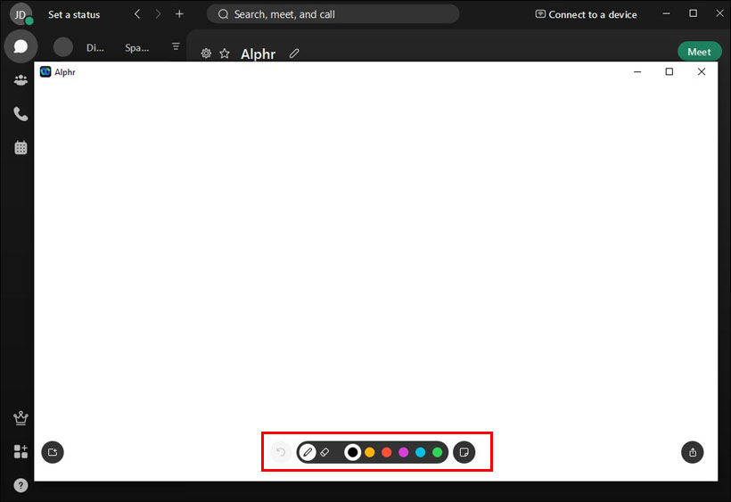 When using a whiteboard in a space, keep in mind that all members can see and edit it. If one of your coworkers selects the “Clear all” option, you won’t be able to undo it. However, if you select it, you can quickly select the “Undo” button to restore the whiteboard.