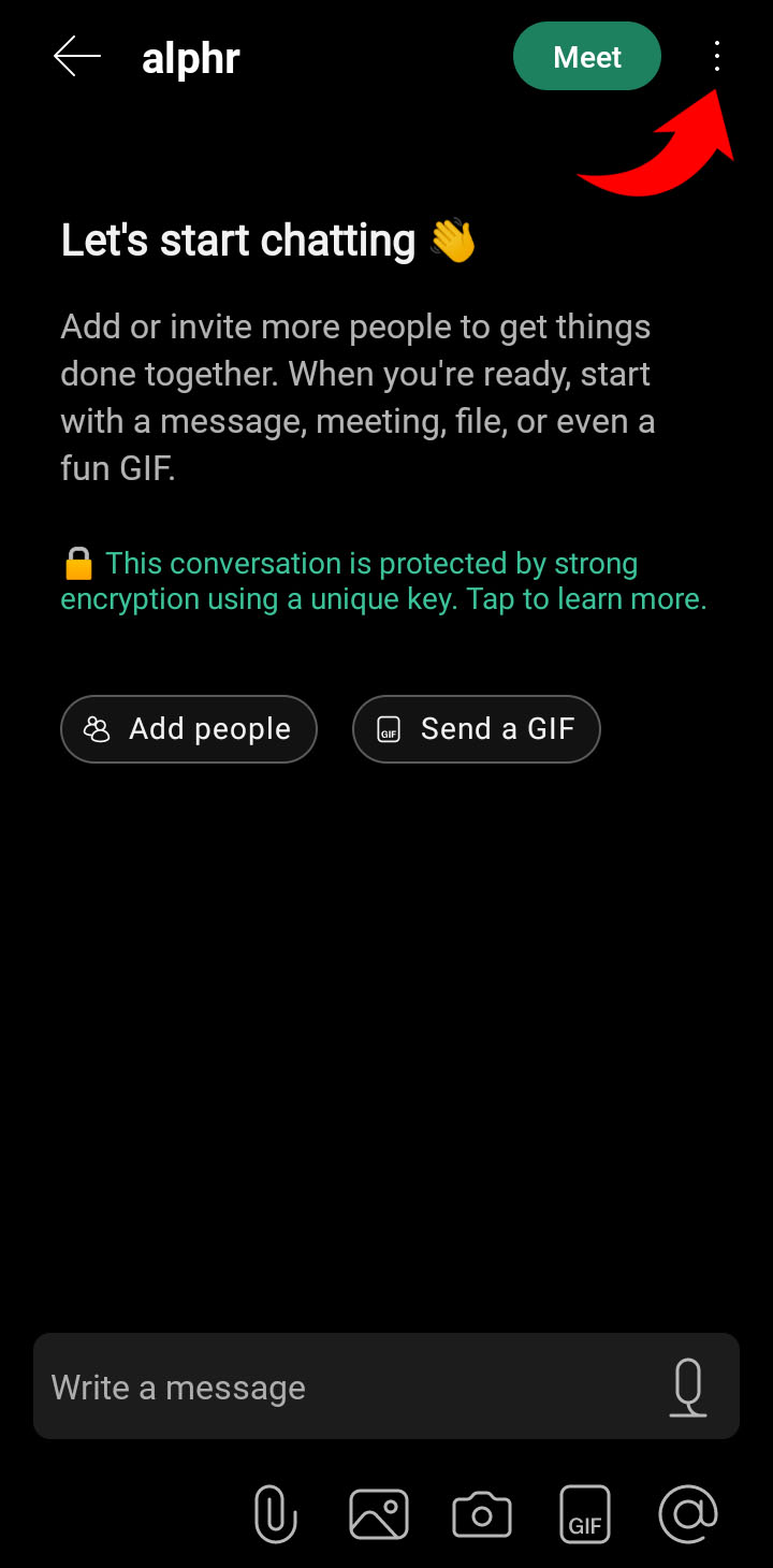 - Open the space where you want to use the whiteboard and access the activity menu (the three dots).