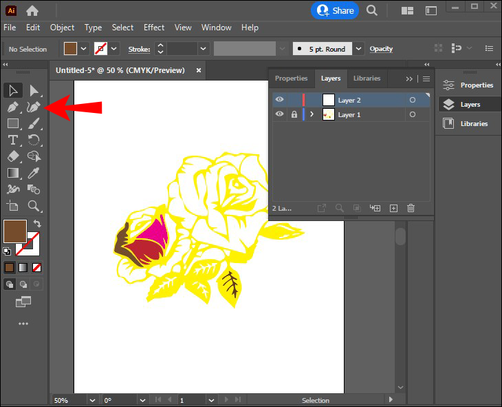 - Select the Pen tool and trace the image on the new layer.