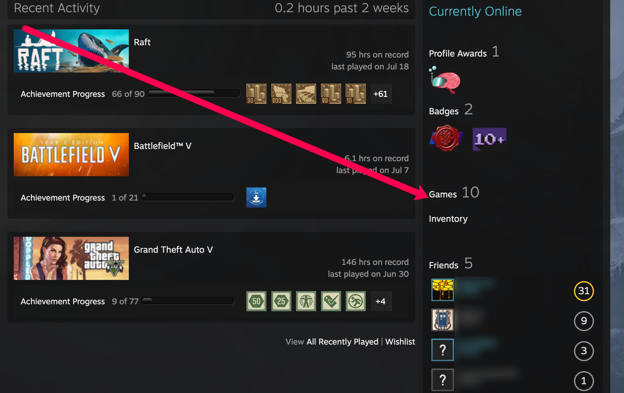 - You will see several tabs here (games they own, recently played games, their wishlist). Click on Wishlist.