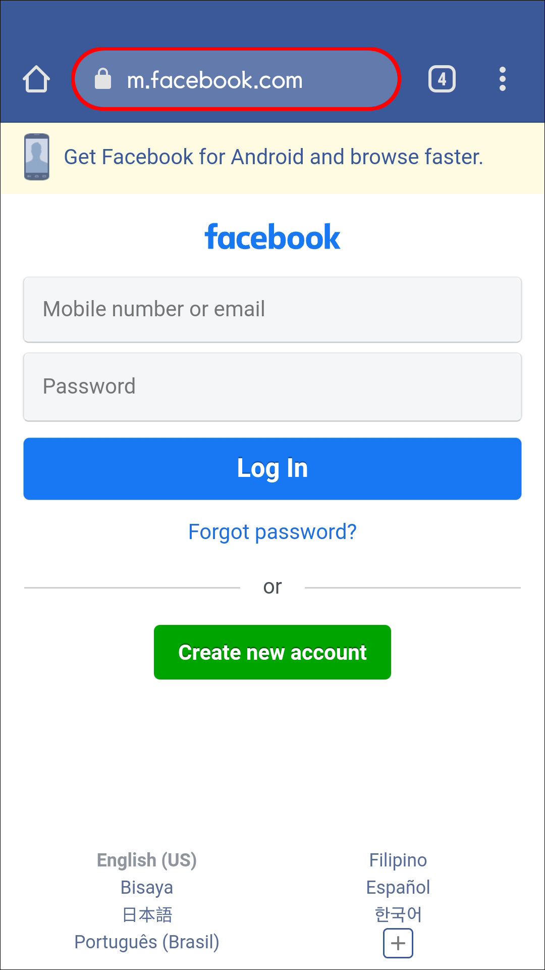 - Launch your preferred browser and navigate your way to Facebook’s website.