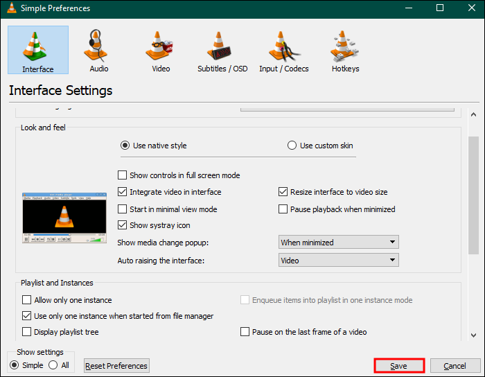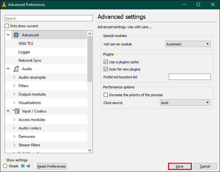 If you want to alter VLC settings, you should find options under “Preferences.” You can arrive at “Preferences” by clicking “Tools” on the VLC top menu or pressing “Ctrl +P.” Once you choose your preferences, click “Save” to keep changes. Other options can appear if you turn the “Show settings radio” button to “All.”