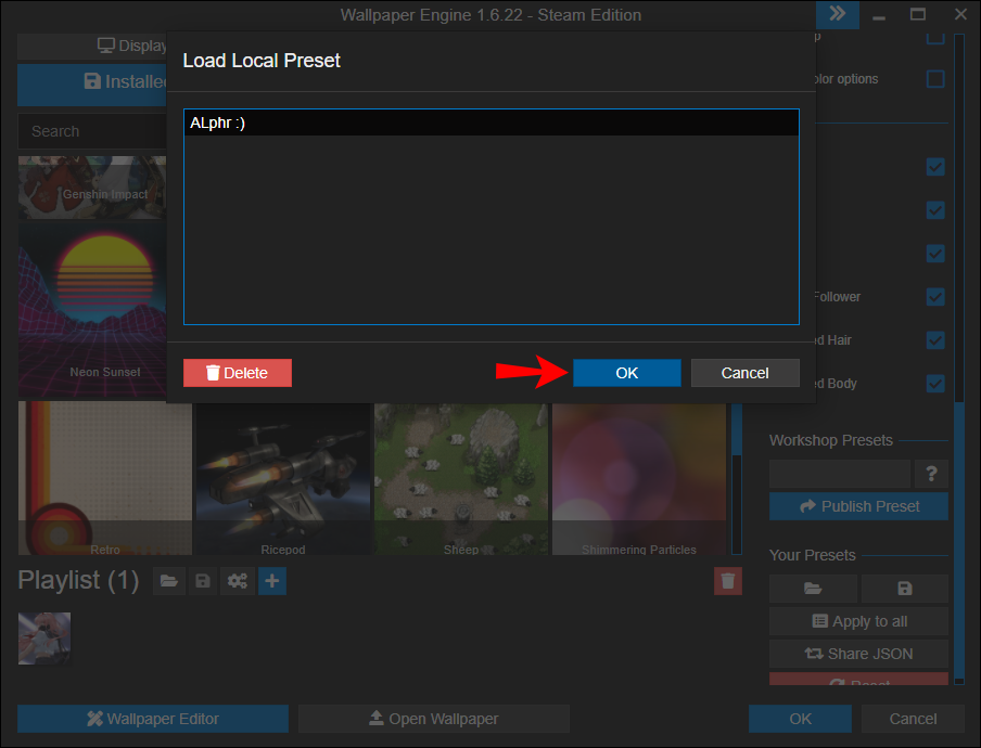 If you’ve created a preset for one of the wallpapers in your playlist, you can use it instead of the original version by following the steps below:
