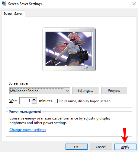 - Windows screensaver settings will open automatically. Here, open the drop-down list and select “Wallpaper Engine” as your screensaver. Also, you can customize after what time the screensaver appears.