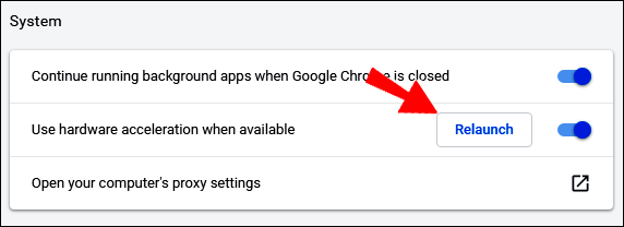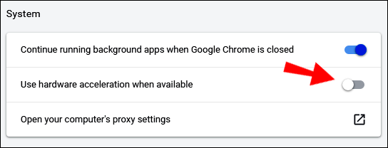- Under the “System” section, toggle on the “Use hardware acceleration when available” button.