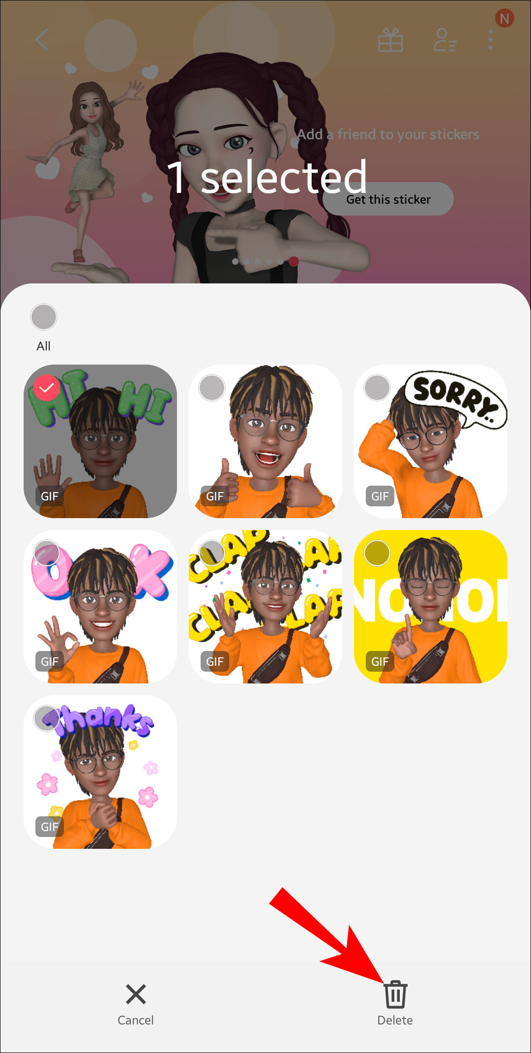 - Delete stickers you no longer need by hitting the three dots, then “Delete Stickers.”
