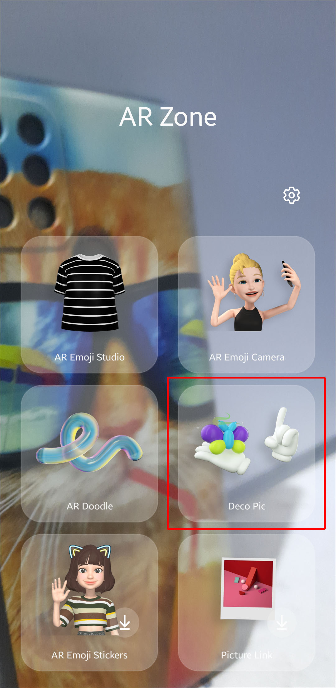 - Open the “AR Zone” app and hit “Deco Pic.”