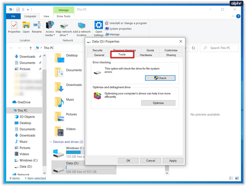- Go back to Properties once cleaned and select Tools.