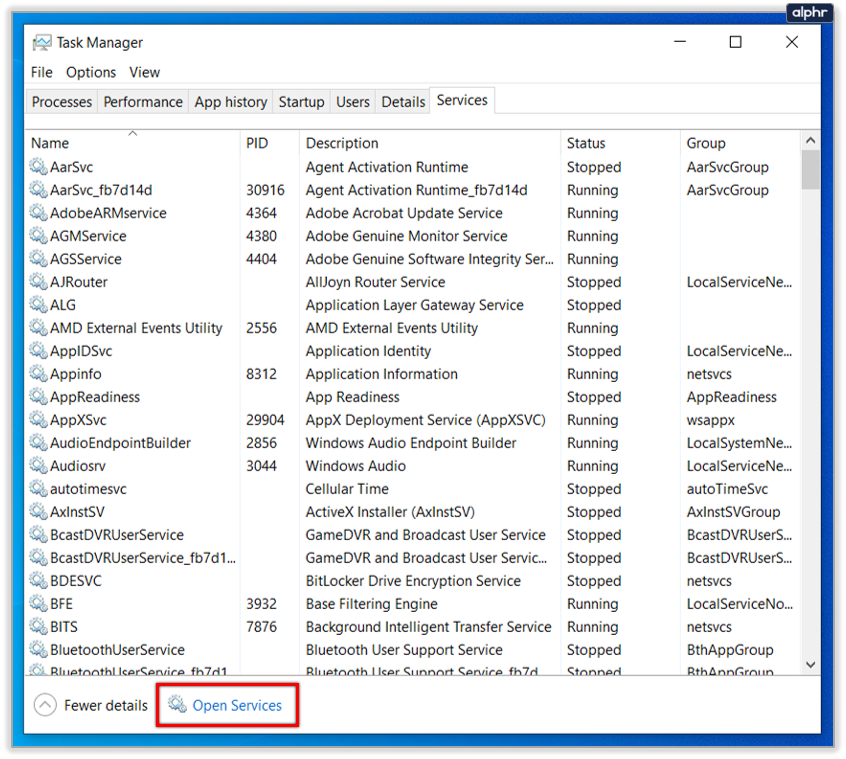 - Select the Services tab and then Open Services at the bottom.