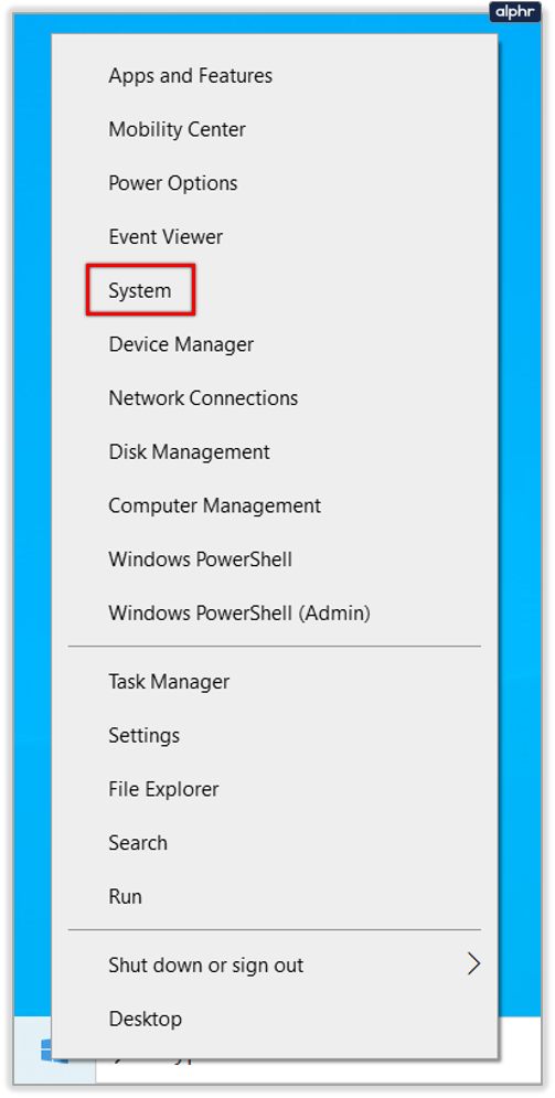 - Right click the Windows Start button and select System.