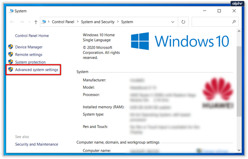 - Select System info, Advanced system settings in the left pane and then Advanced tab.