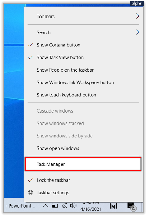 - Right click on your Taskbar and select Task Manager.