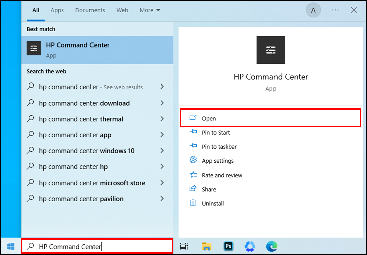 - Open the Start menu, type “HP Command Center,” and open it.