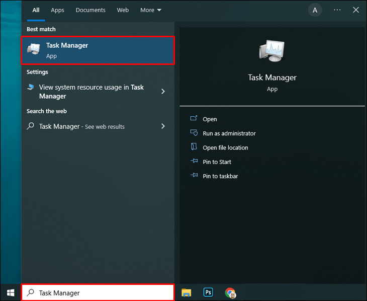 - Launch the Start menu, type “Task Manager,” and open it.