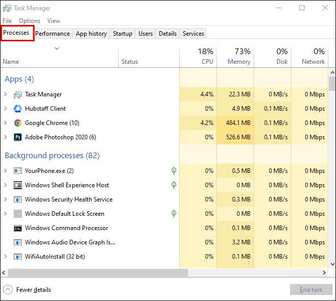- Under the “Processes” tab, you’ll find a list of all active apps and processes.