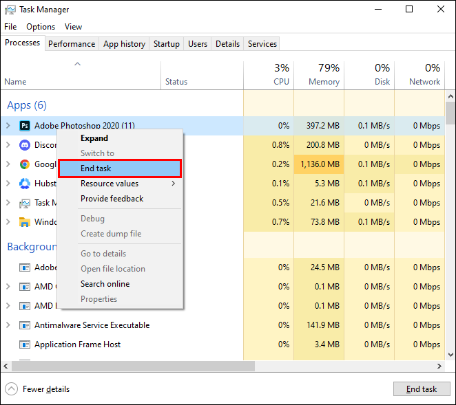 - Find the one you don’t need, right-click on it, and choose “End task.” Repeat this step for every app and process you want to end.