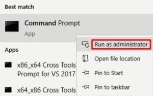 - Right-click the icon for Command Prompt and select Run as administrator.