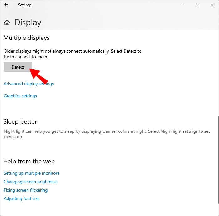 - Under the “Detect other display option,” click the “Detect” button.