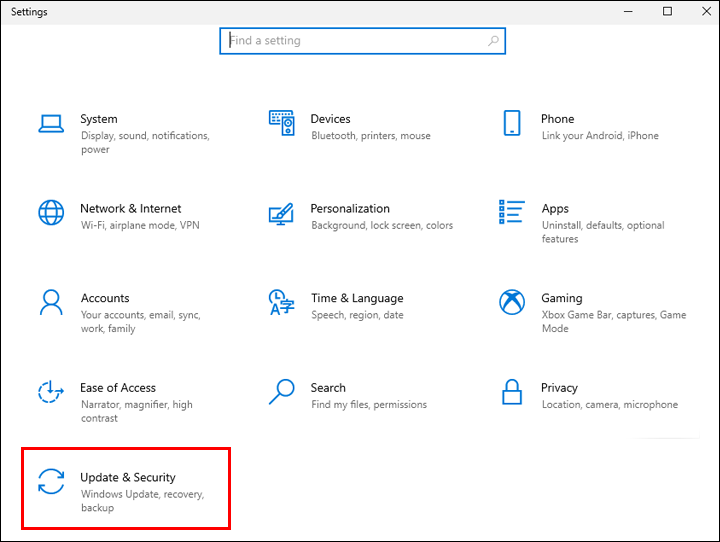 - Select “Update & Security.”