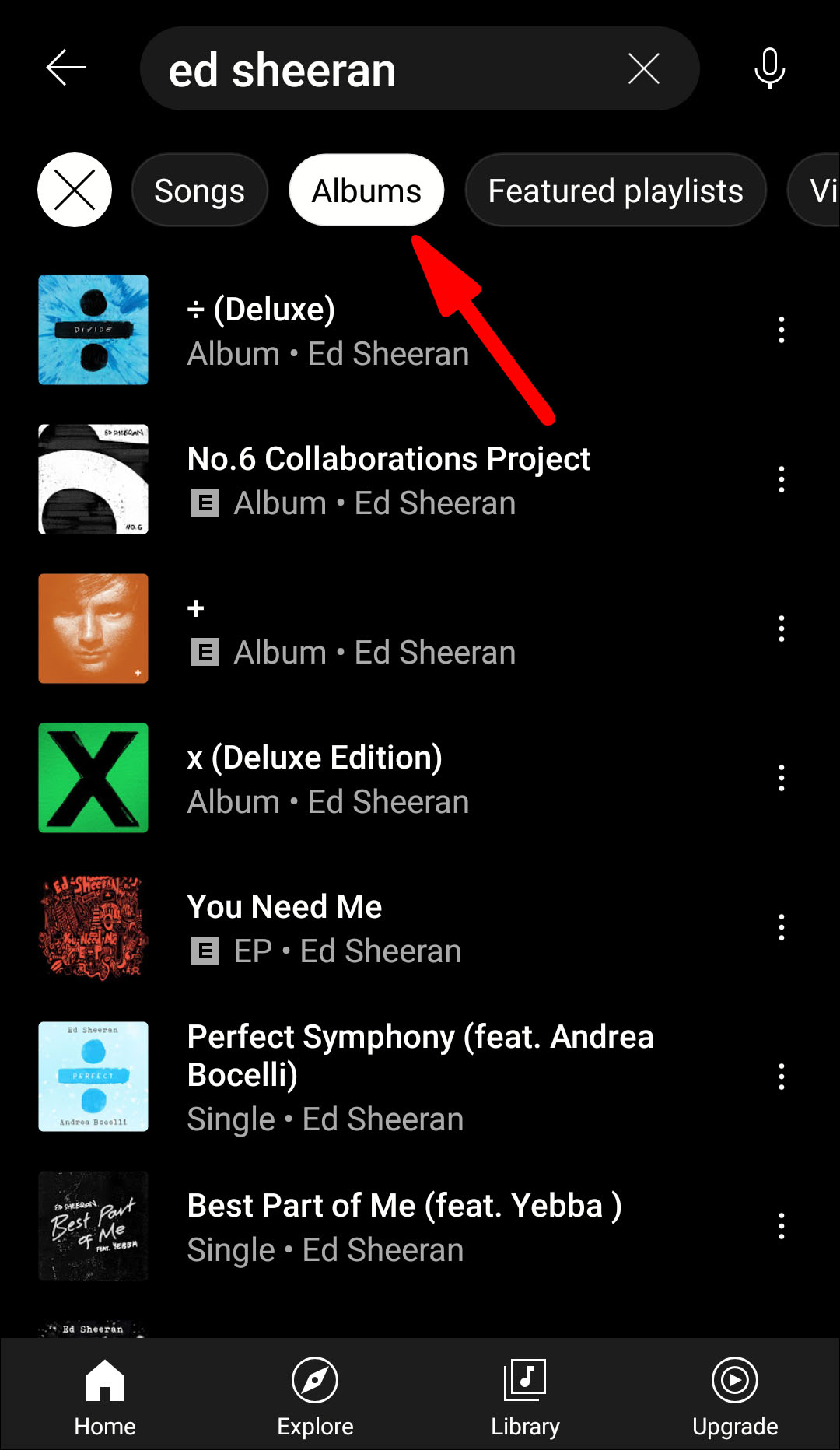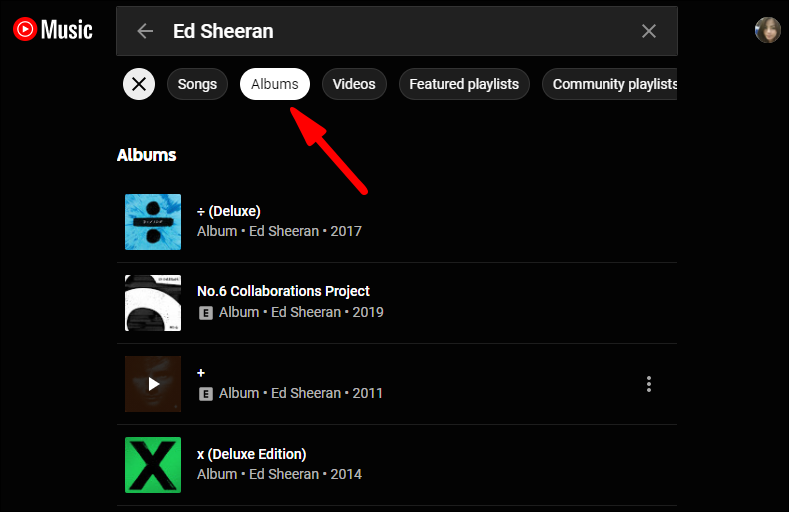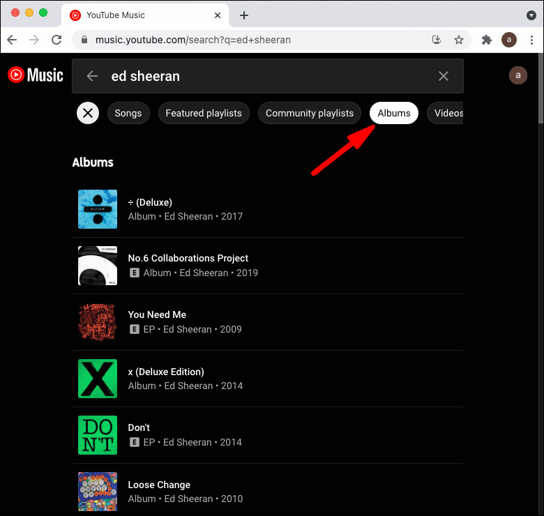 - Search for the album you want. Make sure to switch to the “Album” tab.