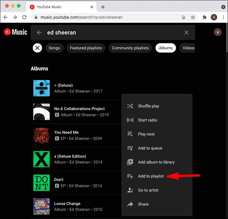 Let’s see how you can add an album to your YouTube Music playlist via your Windows computer first.