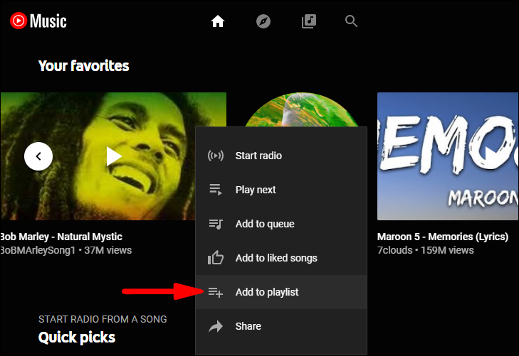 - Then, click on “Add to playlist,” select a playlist or create a new one.