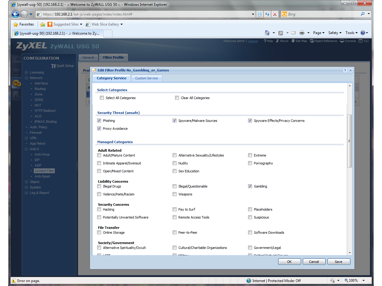 Web filtering is provided by Blue Coat’s Cloud Service, and uses filter policies applied to objects such as systems, subnets and users. It provides over 70 different categories, and we found it extremely efficient.